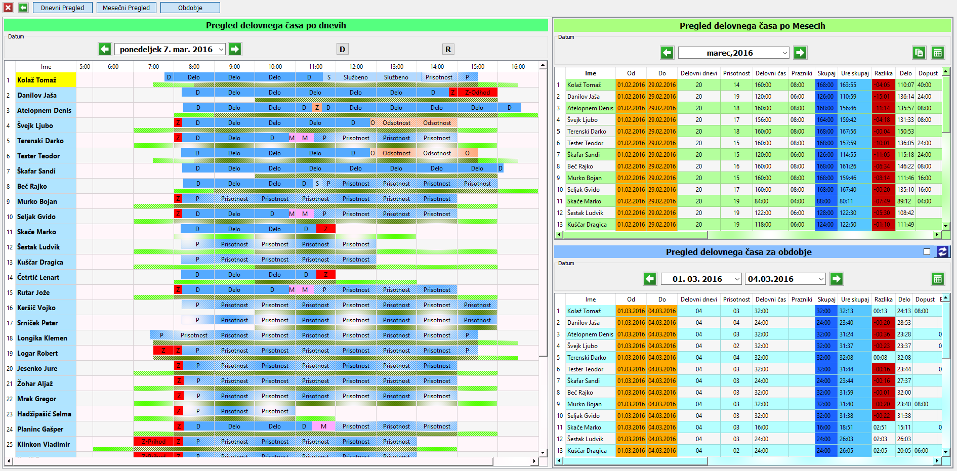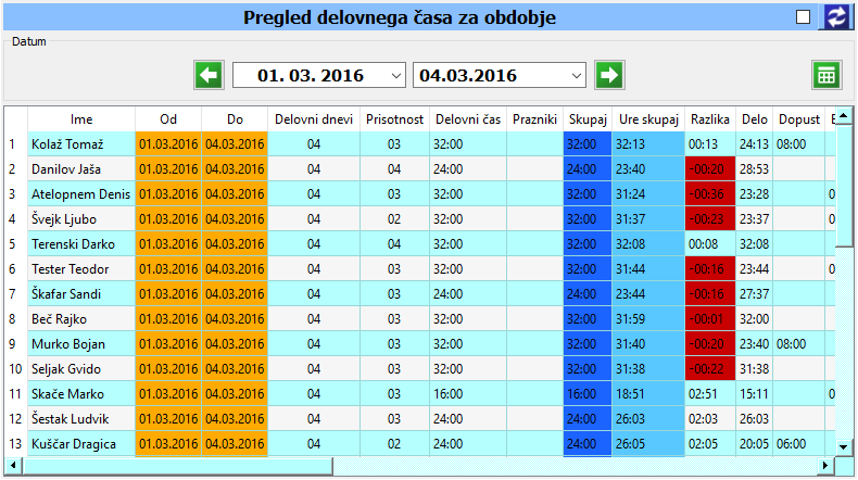 - Pregled delovnega časa za obdobje.